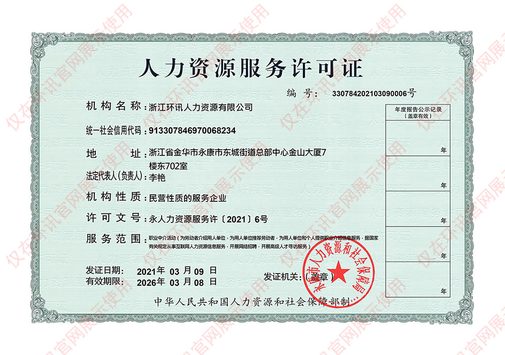 返回首頁 《企業(yè)營業(yè)執(zhí)照》 《人力資源服務(wù)許可證》 《金華人力資源服務(wù)機(jī)構(gòu)年度評價》 《永康優(yōu)秀民營人才中介》 《愛心企業(yè)》